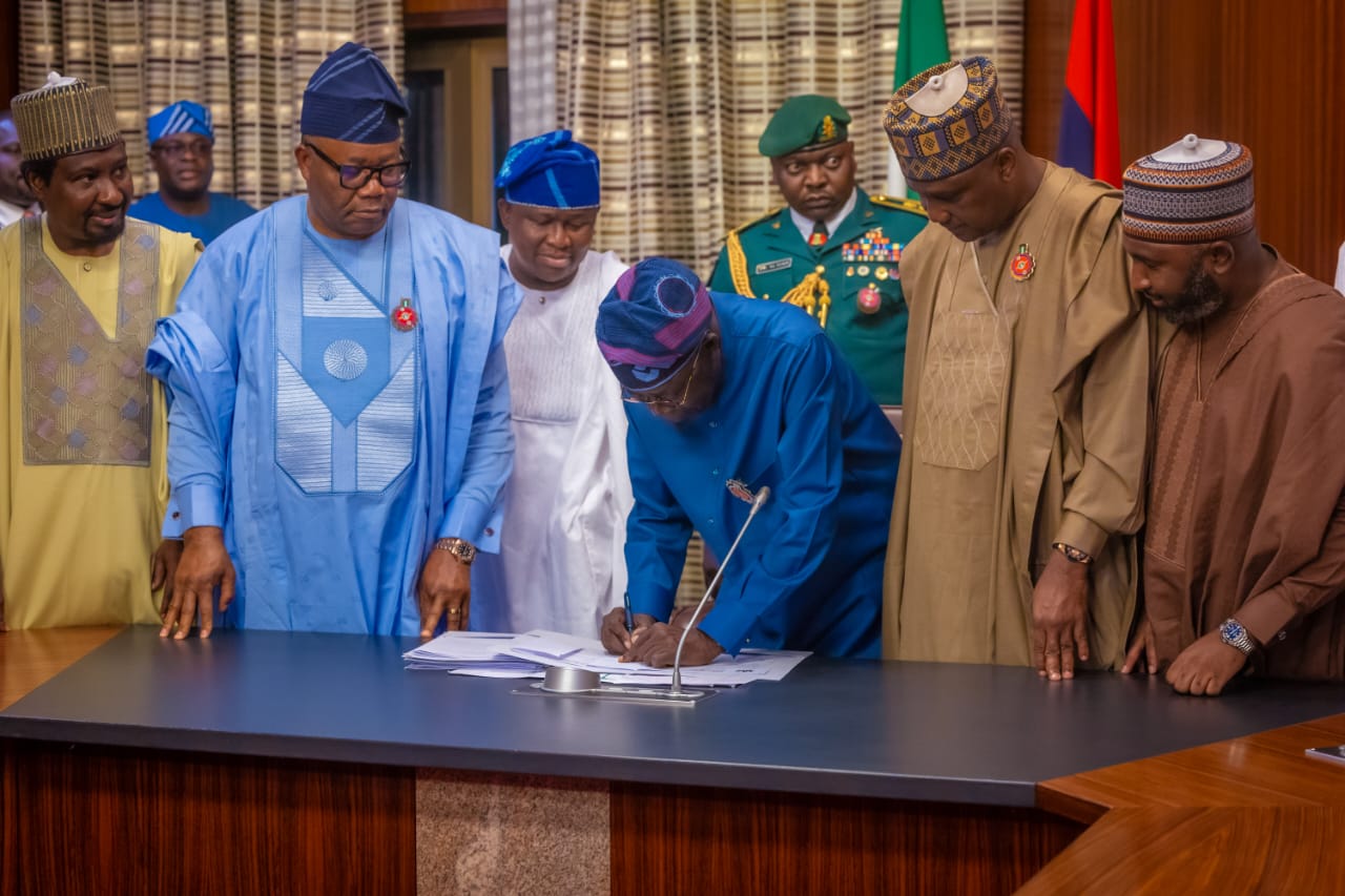 President Bola Tinubu officially approved the 2024 budget, totalling N28.7 trillion, during a brief ceremony at the Presidential Villa in Abuja on Monday, January 1. At the signing were notable figures such as the President of the Senate, Senator Godswill Akpabio, and the Speaker of the House of Representatives, Hon Tajudeen Abbas.