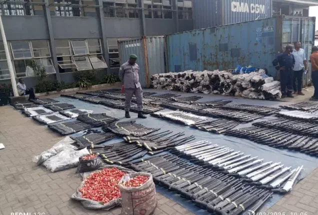 “In May 2018, the service intercepted a significant cache of arms consisting of 440 pump action rifles and accessories, ingeniously concealed within 516 bags of Plaster of Paris (POP) cement in a 1x20ft container with number PONU210024/1.