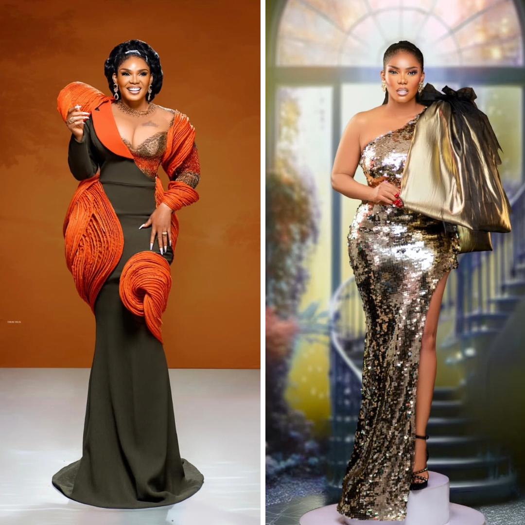 For her first look, Iyabo stunned in a black dress from Mubrik Luxury, featuring bold orange and gold detailing added just the right touch of elegance, making the outfit both regal and effortlessly stylish.